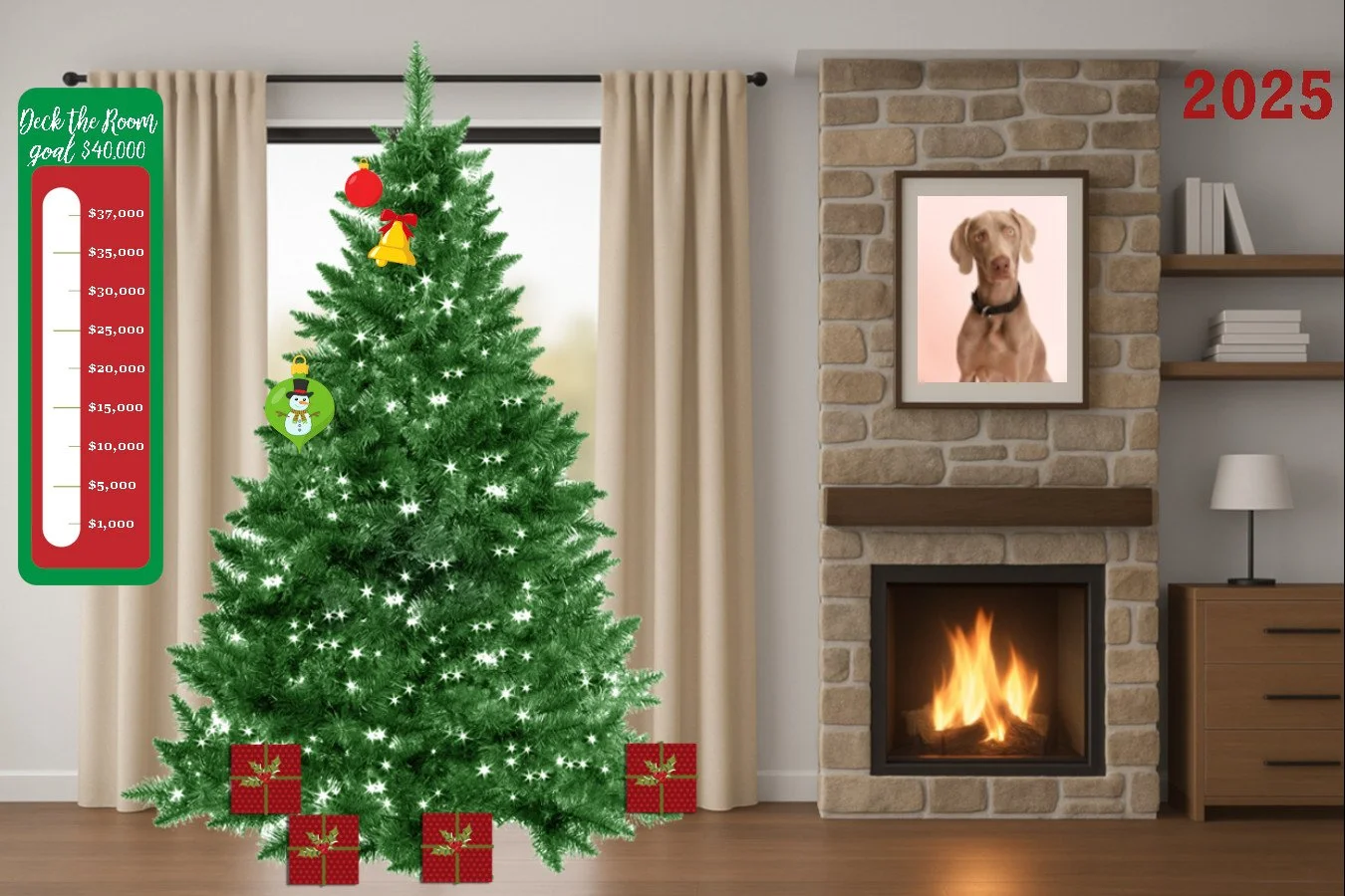 Let’s get festive! It’s time to decorate our chrISTMAS tree room. our last fundraISER of 2025; let’s make it a huge success so we can help more Weims in need in 2026! Get started here!